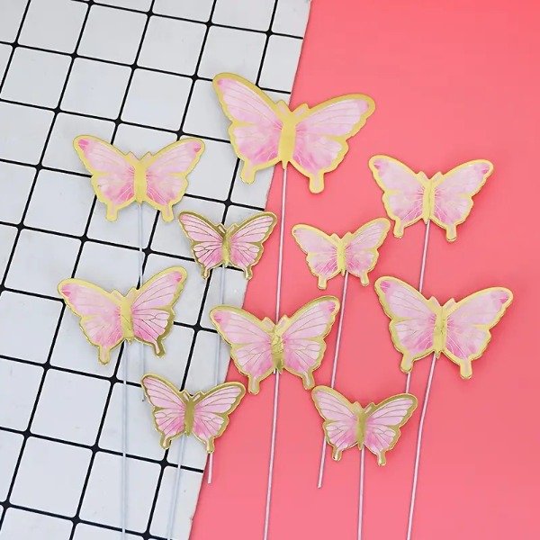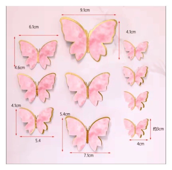 Trae 12 mariposas rosas con dorado de diferentes tamaños